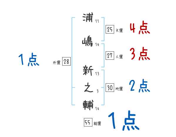 浦嶋新之輔さんの画数の鑑定結果