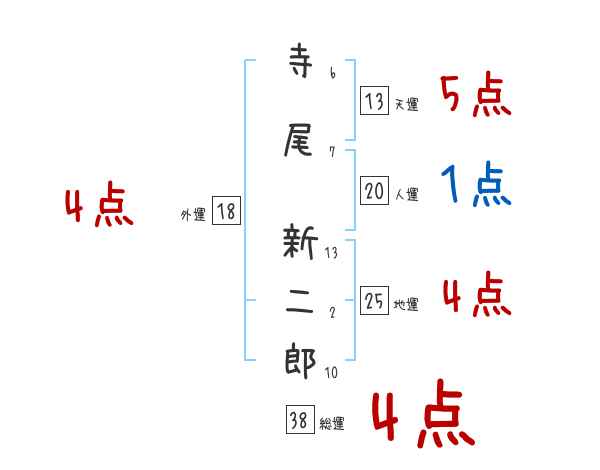 総運![]() | 寺尾新二郎さんの総運は38画の4つ星!温厚な性格で技術的な才能を発揮する。職人的な仕事に向いている。 あなたの人生を表す1番重要な運勢です。生涯を通じて影響する総合運となり、主に50歳以降の晩年期に影響を及ぼします。 |
