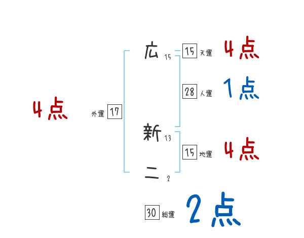 地運![]() | 広新二さんの地運は15画の4つ星!人徳があり出世する。順調に物事を進め円満な人生。 個性を表す基礎的な運勢です。性格形成や対人関係、行動力など家庭環境に影響されます。主に誕生してから20歳くらいまでの若年期の運勢を表します。 |