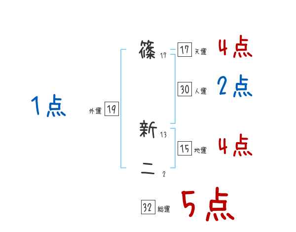 篠新二さんの画数の鑑定結果