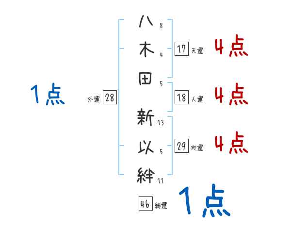 八木田新以絆さんの画数の鑑定結果