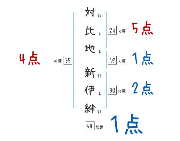 対比地新伊絆さんの画数の鑑定結果