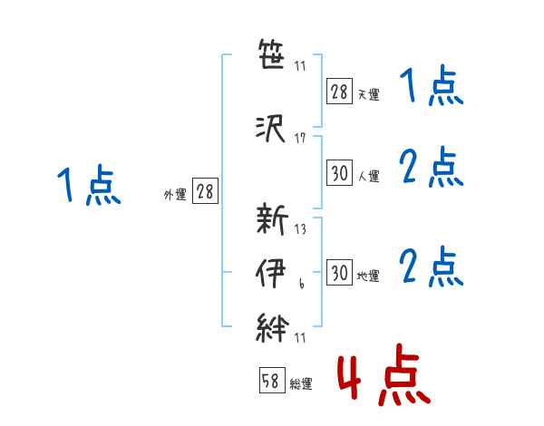 笹沢新伊絆さんの画数の鑑定結果