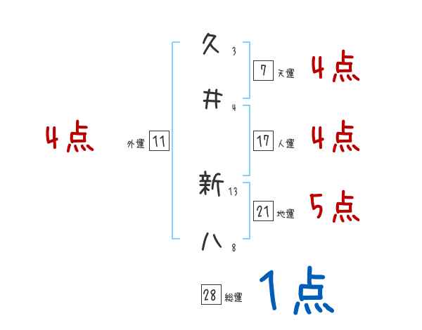 久井新八さんの画数の鑑定結果
