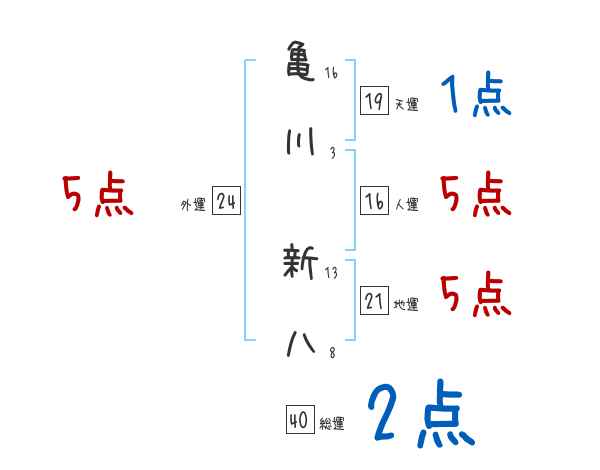 亀川新八さんの画数の鑑定結果