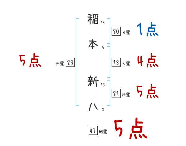 稲本新八さんの画数の鑑定結果