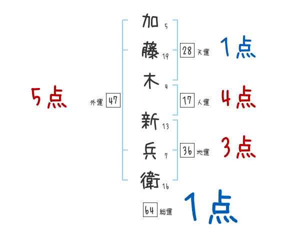 加藤木新兵衛さんの画数の鑑定結果