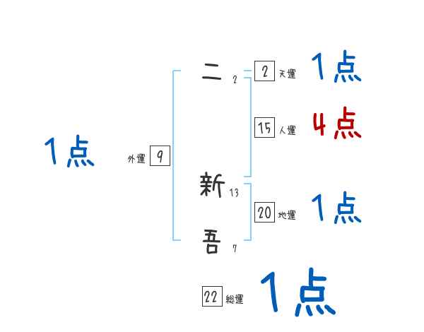 二新吾さんの画数の鑑定結果