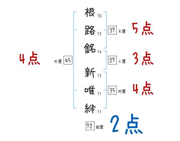 根路銘新唯絆さんの画数の鑑定結果