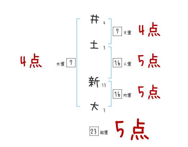 井土新大さんの画数の鑑定結果