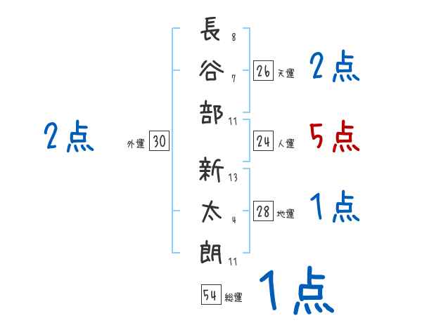総運![]() | 長谷部新太朗さんの総運は54画の1つ星!トラブルが多いかも。周りをよく見て協調して過ごしましょう。 あなたの人生を表す1番重要な運勢です。生涯を通じて影響する総合運となり、主に50歳以降の晩年期に影響を及ぼします。 |