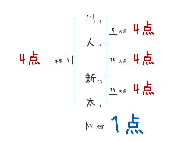 外運![]() | 川人新太さんの外運は7画の4つ星!強い意志や信念を持ち独立心が強い。自立する。 生活面を象徴する運勢です。外部から受ける影響力を表し、結婚運、家庭運や職場、環境への順応性を表します。 |