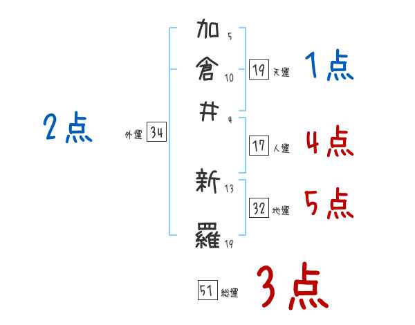 加倉井新羅さんの画数の鑑定結果