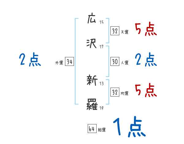 広沢新羅さんの画数の鑑定結果