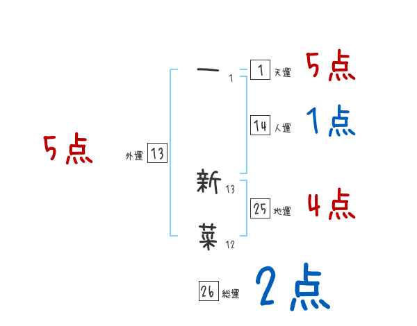 一新菜さんの画数の鑑定結果