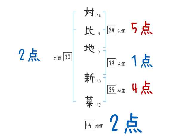 対比地新菜さんの画数の鑑定結果