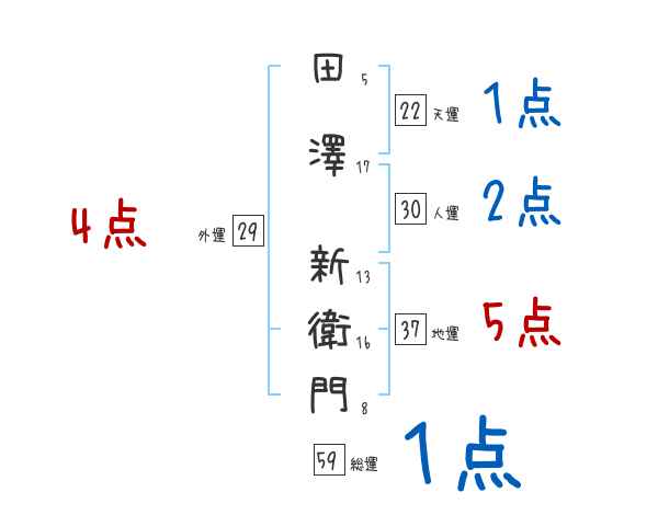 田澤新衛門さんの画数の鑑定結果