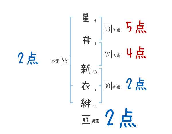 星井新衣絆さんの外運は26画の2つ星