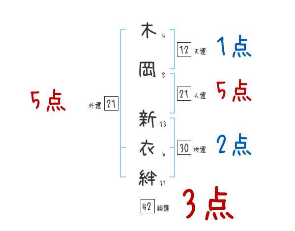 総運![]() | 木岡新衣絆さんの総運は42画の3つ星!病気に注意。多芸であるが消極的でおとなしい。 あなたの人生を表す1番重要な運勢です。生涯を通じて影響する総合運となり、主に50歳以降の晩年期に影響を及ぼします。 |