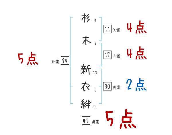 杉木新衣絆さんの画数の鑑定結果