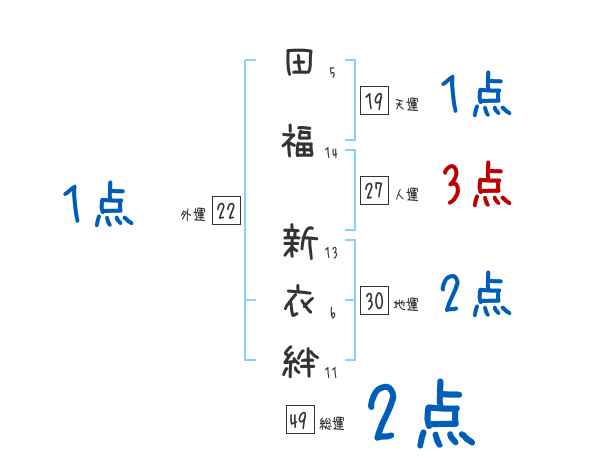 地運![]() | 田福新衣絆さんの地運は30画の2つ星!浮き沈みの激しさに注意しましょう。 個性を表す基礎的な運勢です。性格形成や対人関係、行動力など家庭環境に影響されます。主に誕生してから20歳くらいまでの若年期の運勢を表します。 |