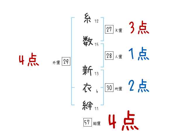 糸数新衣絆さんの外運は29画の4つ星