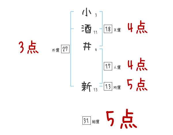 小酒井新さんの画数の鑑定結果
