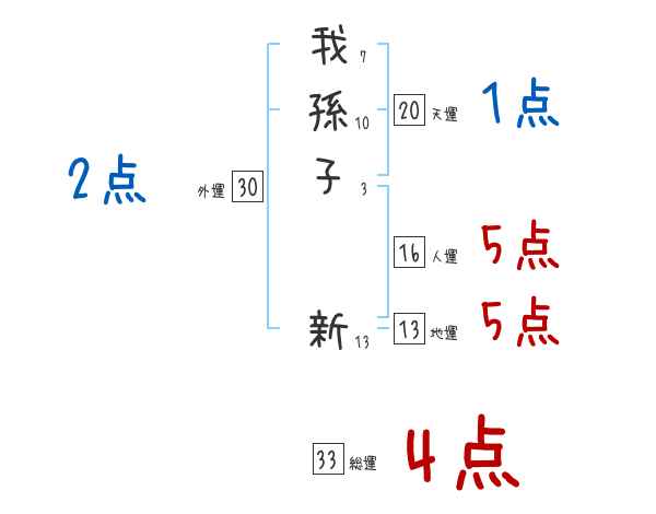 我孫子新さんの画数の鑑定結果