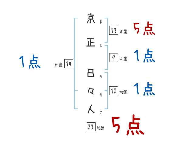京正日々人さんの画数の鑑定結果