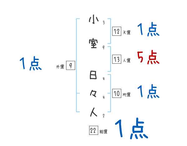 小室日々人さんの画数の鑑定結果