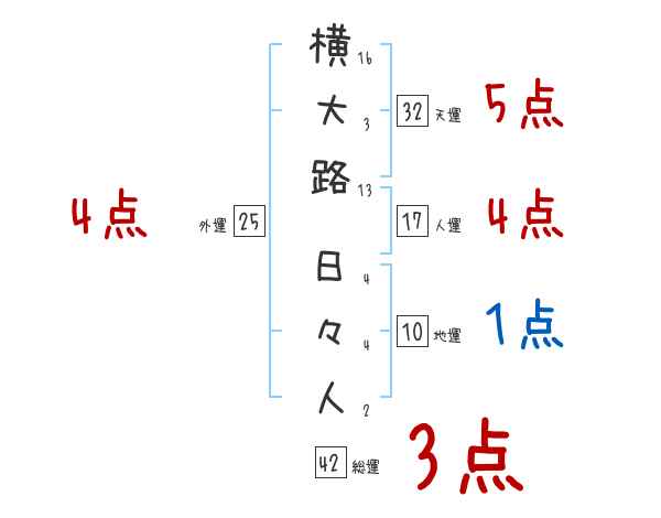 横大路日々人さんの画数の鑑定結果