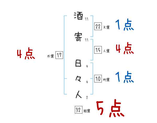 総運![]() | 酒寄日々人さんの総運は32画の5つ星!柔軟性があり成功する。チャンスが多く金運が良い。 あなたの人生を表す1番重要な運勢です。生涯を通じて影響する総合運となり、主に50歳以降の晩年期に影響を及ぼします。 |