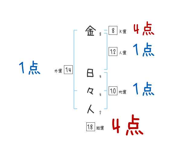 金日々人さんの画数の鑑定結果