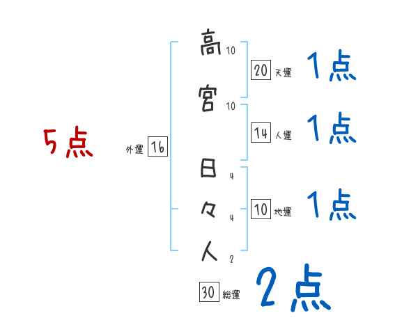 高宮日々人さんの画数の鑑定結果