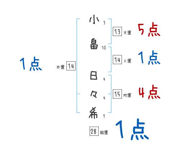 小畠日々希さんの画数の鑑定結果