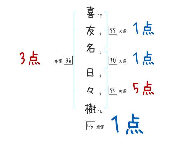 天運![]() | 喜友名日々樹さんの天運は22画の1つ星!努力することが苦手ないっぽう手先が器用。芸術性にも優れる。 家系が持つ宿命的な運勢を表します。祖先から受け継いだ苗字ですので自分の力が及びません。家柄を象徴します。 |