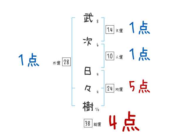 外運![]() | 武次日々樹さんの外運は28画の1つ星!家庭環境に注意。スポーツで活躍できる能力があるかも。 生活面を象徴する運勢です。外部から受ける影響力を表し、結婚運、家庭運や職場、環境への順応性を表します。 |