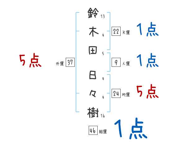 鈴木田日々樹さんの画数の鑑定結果