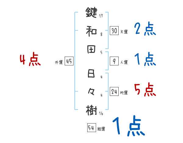 鍵和田日々樹さんの画数の鑑定結果