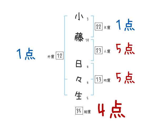 小藤日々生さんの画数の鑑定結果