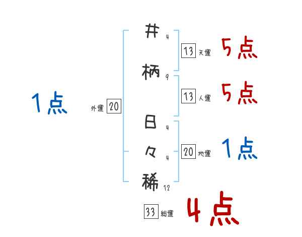 井柄日々稀さんの画数の鑑定結果
