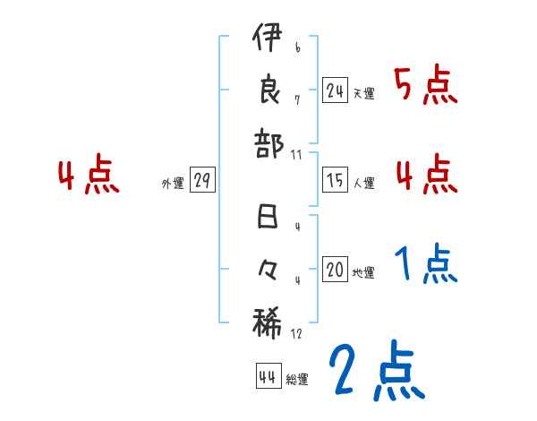伊良部日々稀さんの画数の鑑定結果