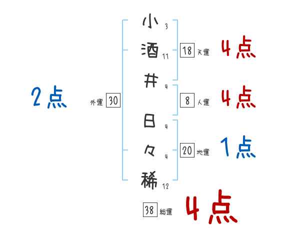 小酒井日々稀さんの画数の鑑定結果