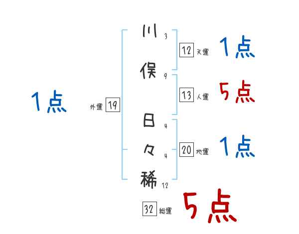 川俣日々稀さんの画数の鑑定結果