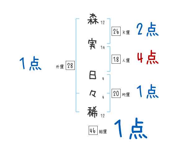 外運![]() | 森実日々稀さんの外運は28画の1つ星!家庭環境に注意。スポーツで活躍できる能力があるかも。 生活面を象徴する運勢です。外部から受ける影響力を表し、結婚運、家庭運や職場、環境への順応性を表します。 |