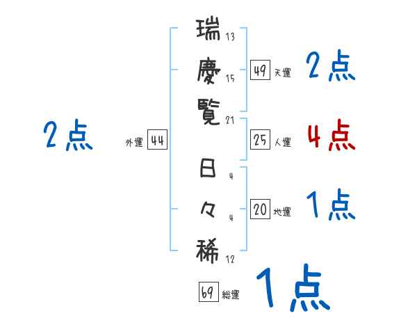 瑞慶覧日々稀さんの画数の鑑定結果