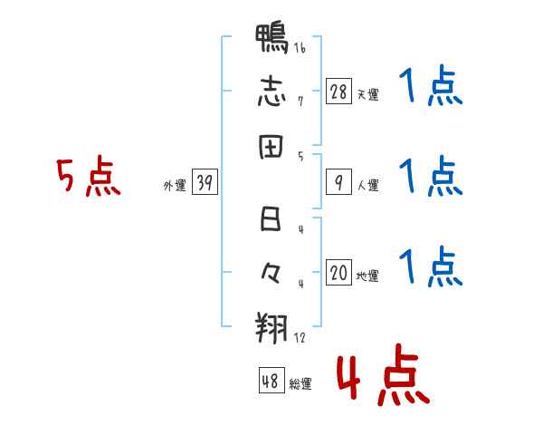 鴨志田日々翔さんの画数の鑑定結果