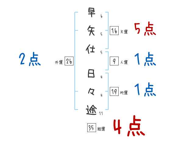 早矢仕日々途さんの画数の鑑定結果