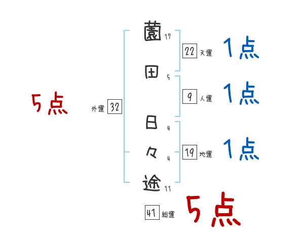 外運![]() | 薗田日々途さんの外運は32画の5つ星!柔軟性があり成功する。チャンスが多く金運が良い。 生活面を象徴する運勢です。外部から受ける影響力を表し、結婚運、家庭運や職場、環境への順応性を表します。 |