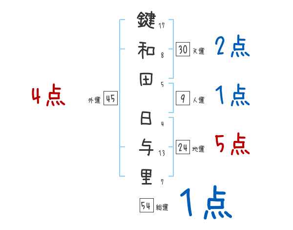 鍵和田日与里さんの画数の鑑定結果